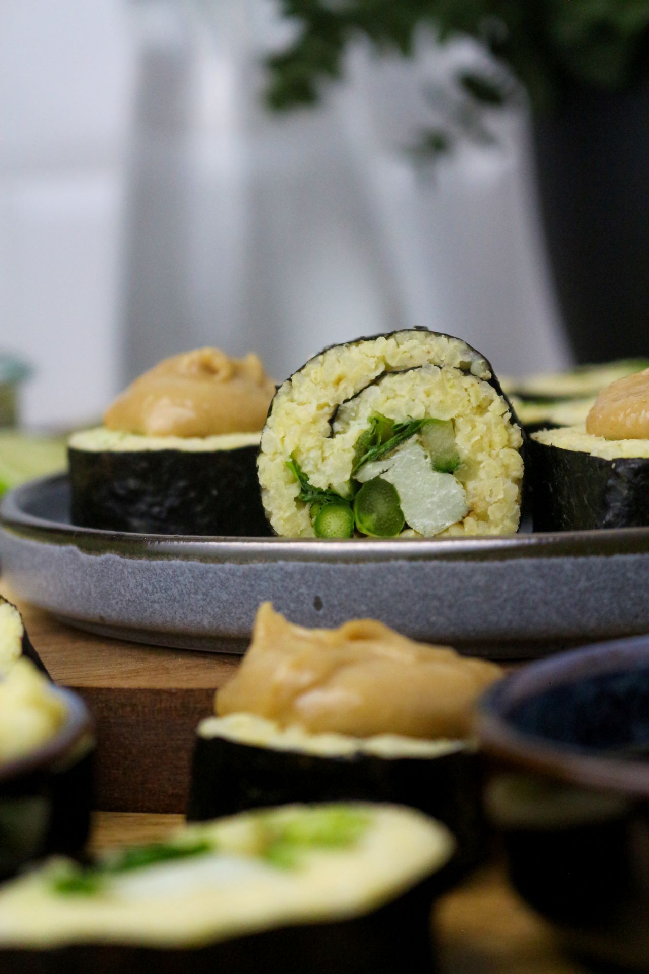 Serveeri hirsisushit kookoskastme ja tahiinikreemiga. Kui eelistad kergemat ampsu, piisab serveerimiseks ka lihtsalt kookoskastmest.