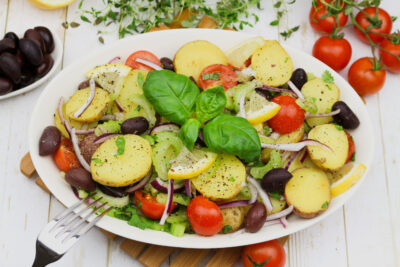 - 6 tassitäit meelepärast salatit (rooma salat, lehtsalat, võisalat, rukkola, spinat vm)